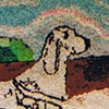 ROLL, DO NOT FOLD, ALWAYS HAVE THE RIGHT SIDE OUT Folding a hooked rug with brea the base, especially if anything heavy is set on top. Rolling with the base out puts an unnecessary strain on the burlap and weakens the foundation. If a rug is to be stored for a long period, use a sheet or cloth to roll with it but do not use an airtight plastic bag. Fabric needs to breathe and they will sometimes rot or mildew in a plastic bag. Don't put a hooked rug in a hot, dry closet-like space or attic. The base of a rug can dry out and become brittle, destroying the strength and durability of the rug. Note: Condition counts when buying a hooked rug. Professional storage and restoration is available but it's usually expensive. You must check a rug before purchasing for structurally unsound flaws that cannot be repaired. Checking a rug for Flaws or Damage: Here are some things to remember: Check first for whether or not a rug is dry and brittle. You can usually ascertain this by lightly squeezing a portion of the rug in your hand. It should feel supple and pliable. A rug with weakened or rotten base is easily damaged or even destroyed just by normal use, and rugs in this condition are very difficult to repair. Hold a rug up to the light to look for small holes or breaks (these damages can be repaired). Most old hooked rugs have been repaired in the course of time, and the presence of patches on the back of a rug does not lessen its desirability, that is, if the restoration has been well done with colors and cloth in the same type as the original. Rugs are frequently rebound to cover wear at the edges, and again, rebinding does not reduce a rug's desirability if the restoration has been done well. The only proper way to repair a hole in a hooked rug is to sew a small burlap patch to the base and rehook the missing area. A rug that has been repaired with sewing thread will not hold up if used underfoot. Virtually all old hooked rugs were worked on burlap or homespun linen, whereas hooked rugs on white monk's cloth could be presumed to be modern. Hooked rugs that are used on a hard wood floor should have a thin rubber base to insure longer wear.