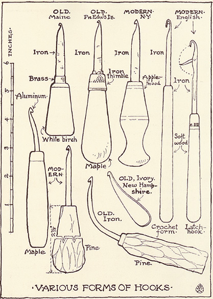 Book pages taken from "How to make Hooked Rugs" by Mary Perkins Taylor, pages 44, 45, 46.